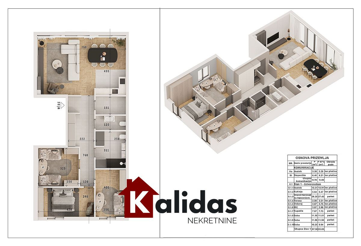 SREMSKA KAMENICA, ČETVOROSOBAN STAN, 98 m2 - nudimo vam izuzetnu nekretninu koja će vas kupiti svojim fantastičnim položajem sa pogledom na grad. U pitanju je vila sa svega tri stana. Prvoklasna gradnja i oprema se podrazumevaju. Sam idejni projekat stana je odličan, sa fantastičnim dnevnim boravkom od nekih 30 m2, gde je čitav prednji deo omeđen staklenim portalima koji garantuju obilje svetlosti. Spavaći deo je okrenut ka dvorištu, gde dobijate nekih 25 m2 istog koje možete urediti po svojoj želji. Uz stan se dobijaju dva garažna mesta, ostava i parking mesto ispred zgrade. Useljenje se očekuje na proleće 2026. godine. Iskoristite priliku i pronađite svoj savšeni dom! Pozovite za više informacija, kao i za razgledanje stana.Topla preporuka. Agencijska oznaka 1008229. Kontakt - Ljiljana, tel. 064/284-4879, 021/382-68-30, Kalidas 021, Novi Sad Reg. br. posrednika: 802, web-sajt: www.kalidas-nekretnine.com